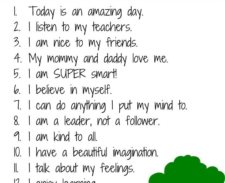 You will be amazed at how quickly children grab these things. I have a 9 and 4 -year old and I encourage them to always say their affirmations. My 4-year old can now say those sentences without even looking at where I put it up.