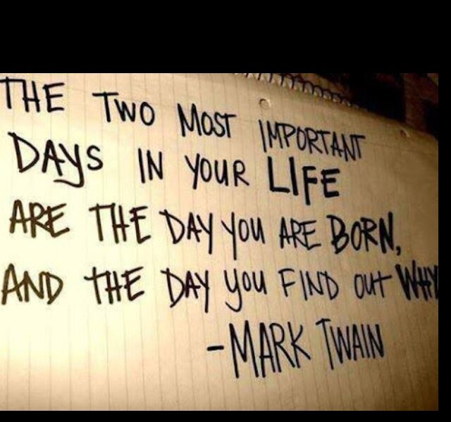 Mark Twain states that the 2nd most important day in your life is when you find out why you were born.
